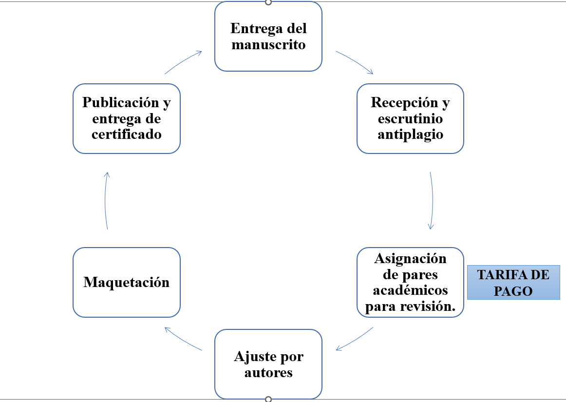 El proceso editorial comienza con la entrega del manuscrito por parte del autor. A continuación, el equipo editorial realiza un análisis exhaustivo para verificar la originalidad. Una vez aprobado este análisis, se solicita al autor el pago para cubrir los costos de la revisión por pares académicos. Después de la revisión y de que el comité académico sugiera las correcciones necesarias, el artículo revisado se envía al autor para que realice los ajustes pertinentes. Una vez que el autor devuelve el manuscritos corregido, se procede a la maquetación y posterior publicación. Finalmente, se entrega el certificado de publicación, completando así el proceso editorial. A continuación, se detalla el proceso de manera gráfica:
